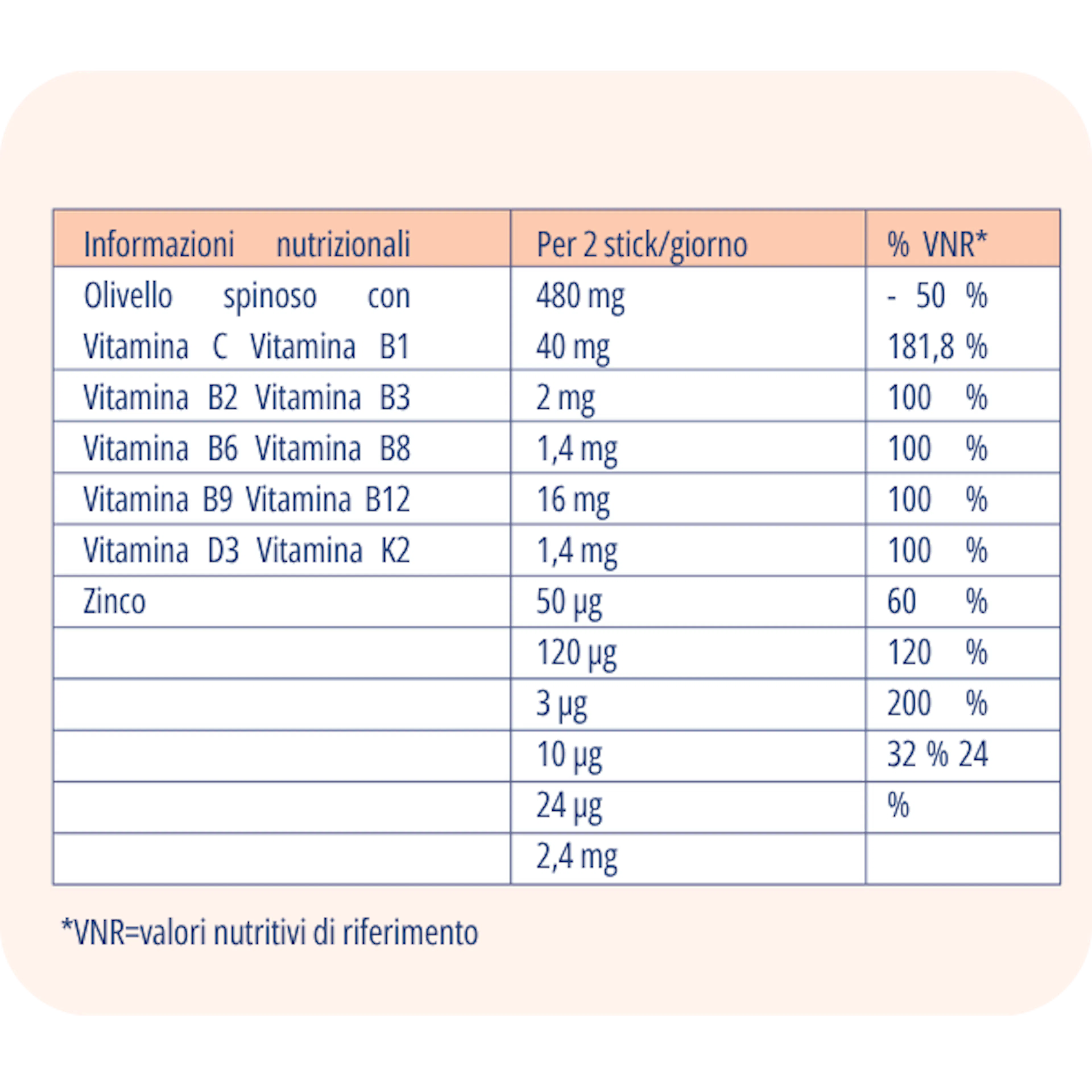 La formula è completata con la vitamina K2 che contribuisce al normale mantenimento delle ossa.